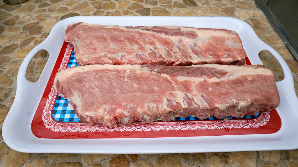 - Haal de ribs uit de koeling en verwijder het membraan aan de achterzijde van de ribs.